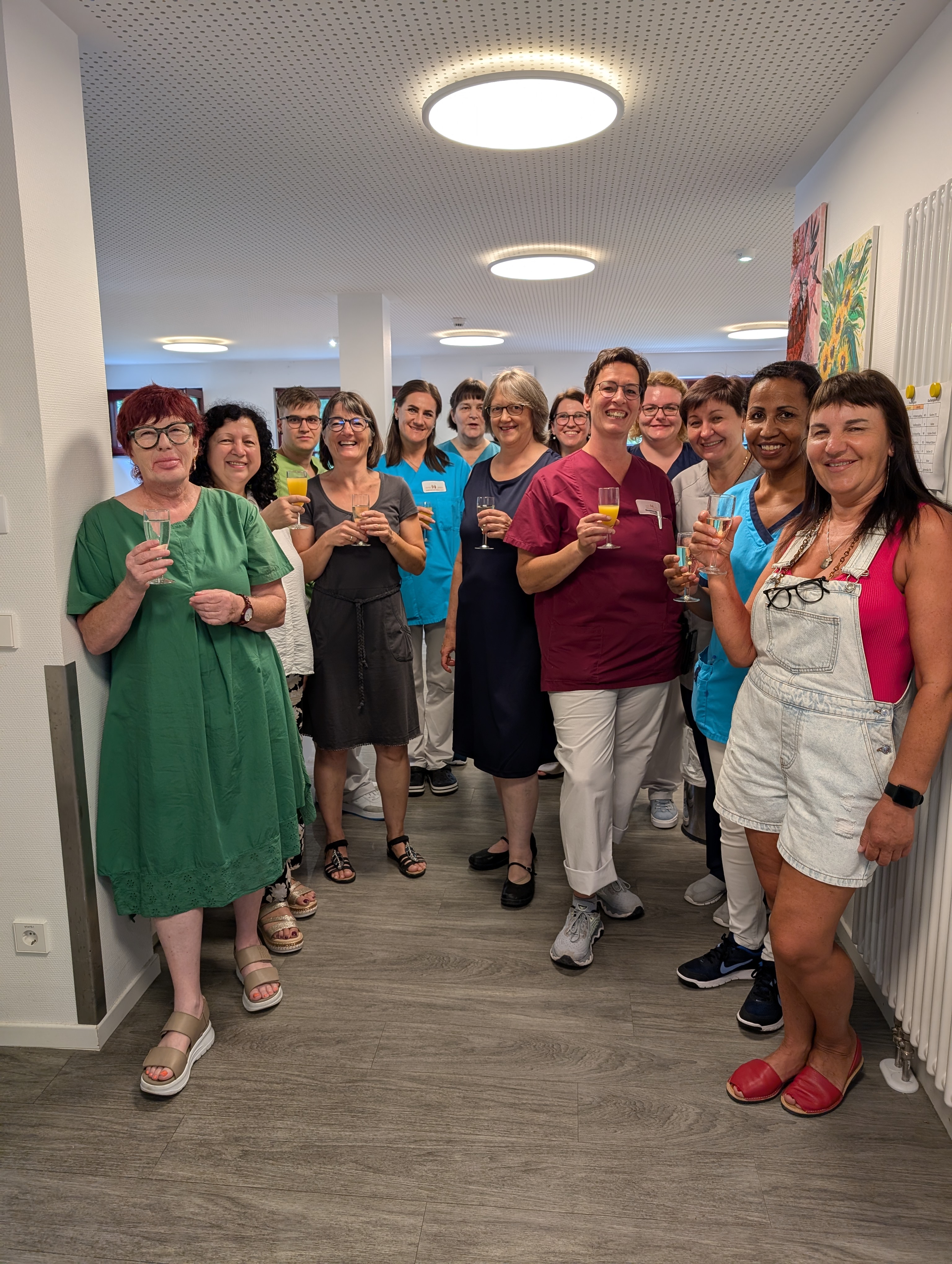 Die Einweihung der Küche fand unter großem „Hallo“ statt. Es durfte mitgeschnippelt und in die Töpfe geschaut werden. Frau Protsko und Frau Chornodon sind die Frauen der ersten Stunde. Drei Monate wurden sie in St. Barbara eingearbeitet, um das Leben und Wirken im Hausgemeinschaftsmodell mitzuerleben und in St. Josef unter der Leitung von Frau Christa Keck und Frau Silvana Bandelow zu implementieren. Unsere Bewohnerinnen sind sichtlich begeistert darüber, dass „endlich mal was geht“ und sie sich ein kleines Stück wie früher, zuhause fühlen, als sie noch für ihre Familien kochten. Gerne stießen sie mit ihren neuen Köchinnen und dem restlichen Team an und freuen sich über die kommende Zeit am und neben dem Herd.