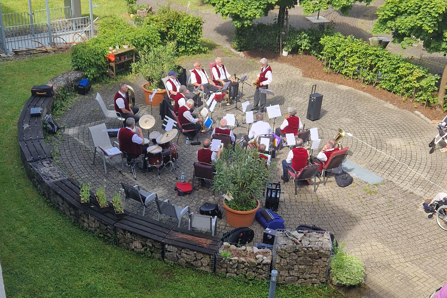 Bei Erdbeerbowle und Sonnenschein konnten unsere Bewohner das Frühschoppenkonzert im Garten genießen. Die SilverStars aus Ringebach spielten eine bunte Mischung aus Blasmusik und es wurde fröhlich geschunkelt und geklatscht.