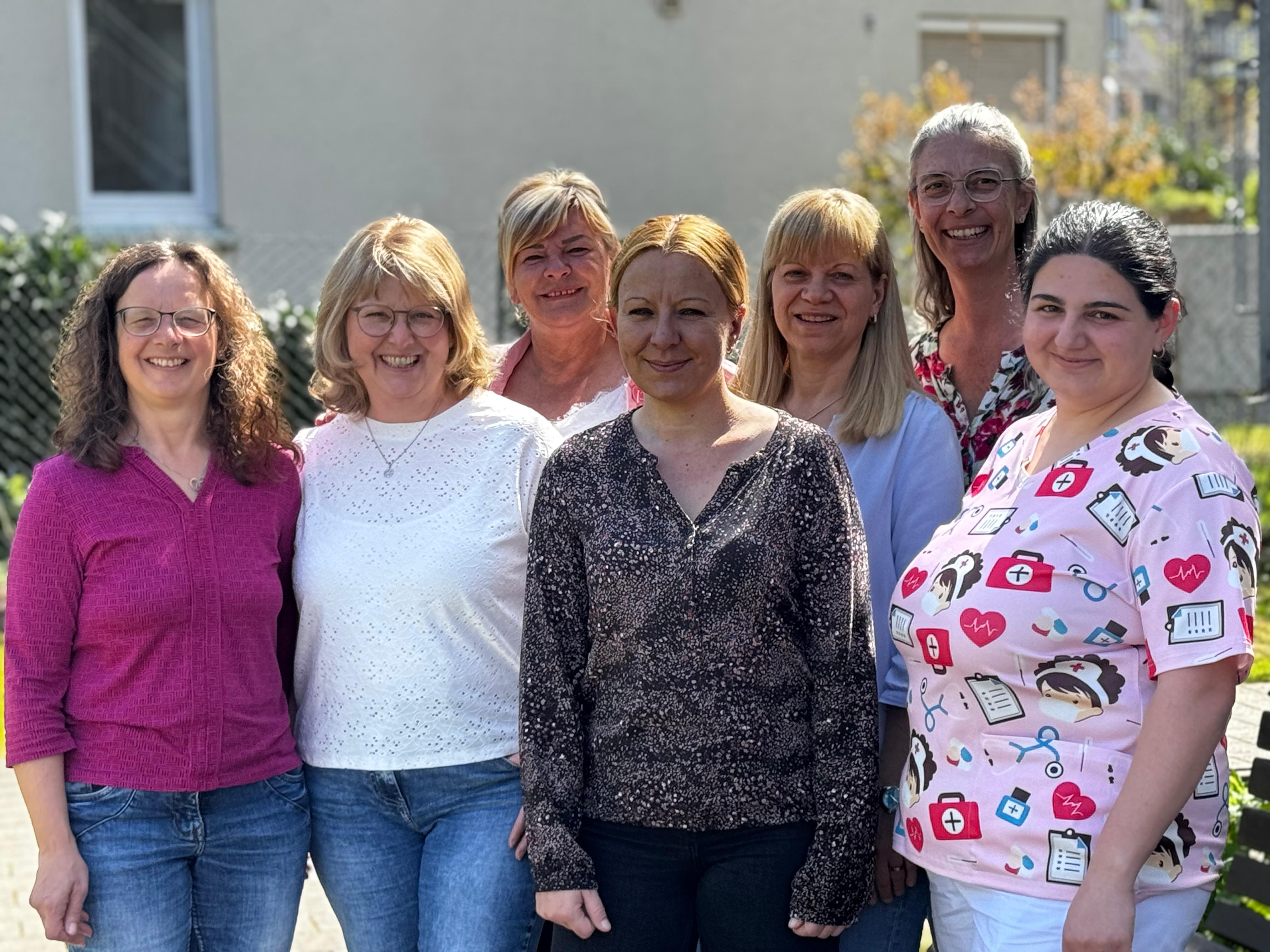 Von links: Sieglinde Hauber (Verwaltung) , Sonja Waidele (Verwaltung), Wioletta Fritsch (Alltagsbegleitung) , Beate Trinschek (Pflege), Brigitta Grötzner (Pflege) , Stefanie Berger (Betreuung), Salome Schulze (Pflege)