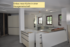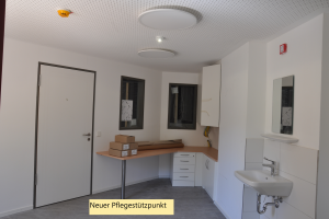 Die ersten neuen Wohnküchen die bereits installiert sind, vermitteln bereits ein Bild, wie das Zusammenleben im Hausgemeinschaftsmodell in den neuen Räumlichkeiten aussehen kann. Schicke Lampen leuchten die Zimmer hell aus und die Nasszellen stehen kurz vor der Vollendung. Ein Teil der Räume sind bereits mit den neuen Möbeln für die Cafeteria belagert und warten auf ihren Einsatz. Die neuen Pflegestützpunkte machen Lust auf das bevorstehende Arbeiten im neuen Umfeld.